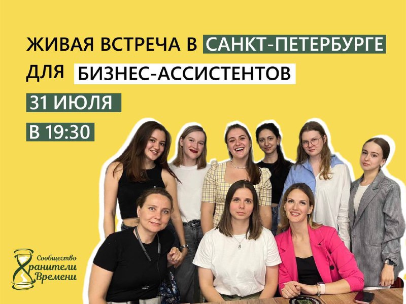 В Санкт-Петербурге уже в эту среду 31.07 в 19:30 сообщество «Хранители времени» организует живую встречу бизнес-ассистентов.